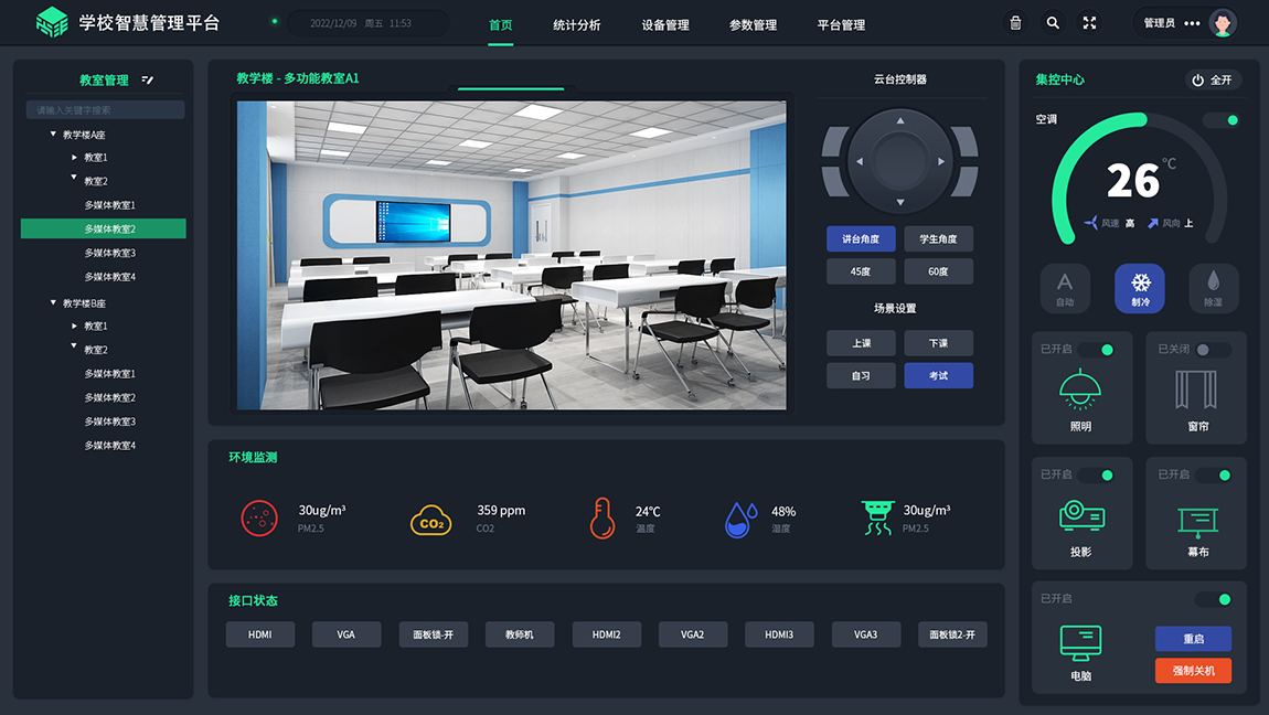 在当今信息化高速发展的时代,为了进一步提升教育管理效率、优化教育资源配置、促进教学质量与学生综合素质的全面发展,我们精心打造了“学校智慧管理平台”。该平台是集成了云计算、大数据、物联网、人工智能等先进技术于一体的综合性解决方案,旨在为教育机构提供一个高效、智能、便捷的管理与服务环境。